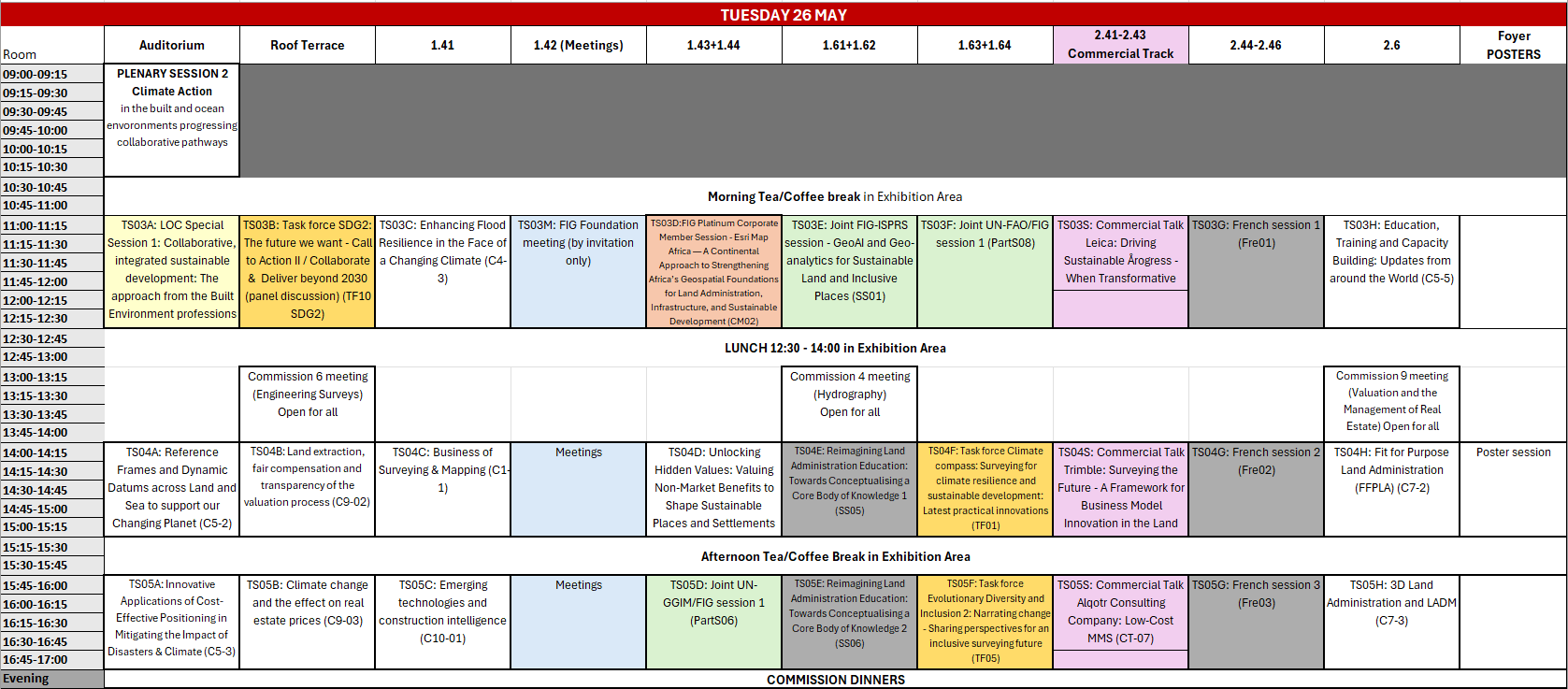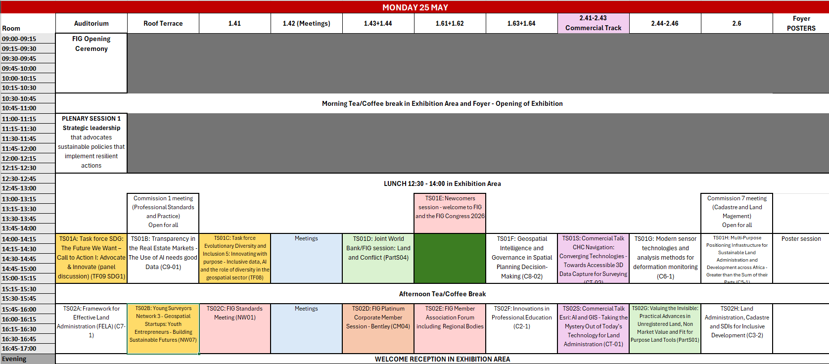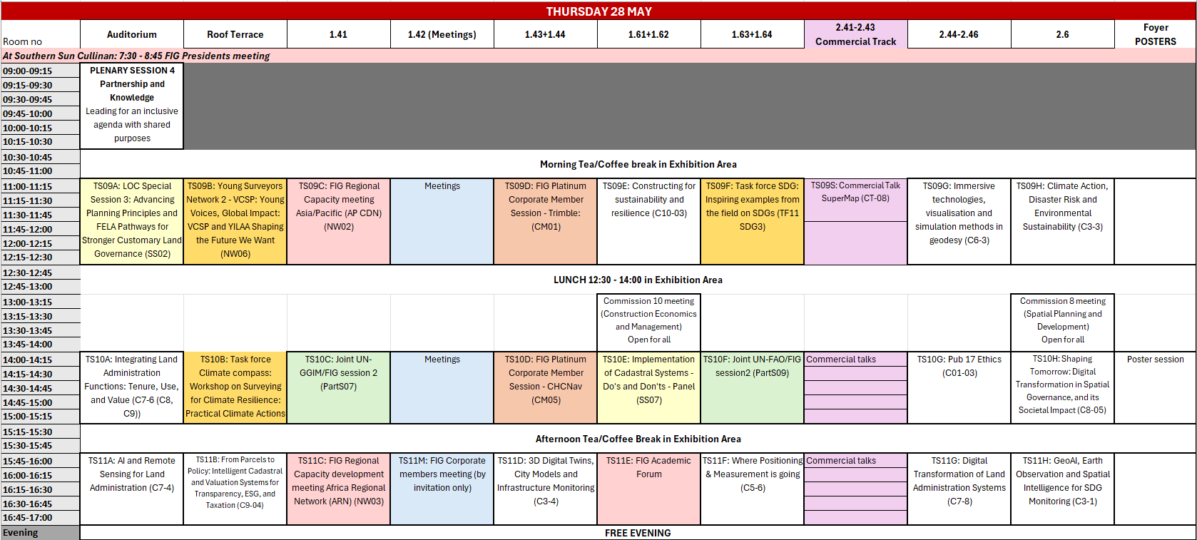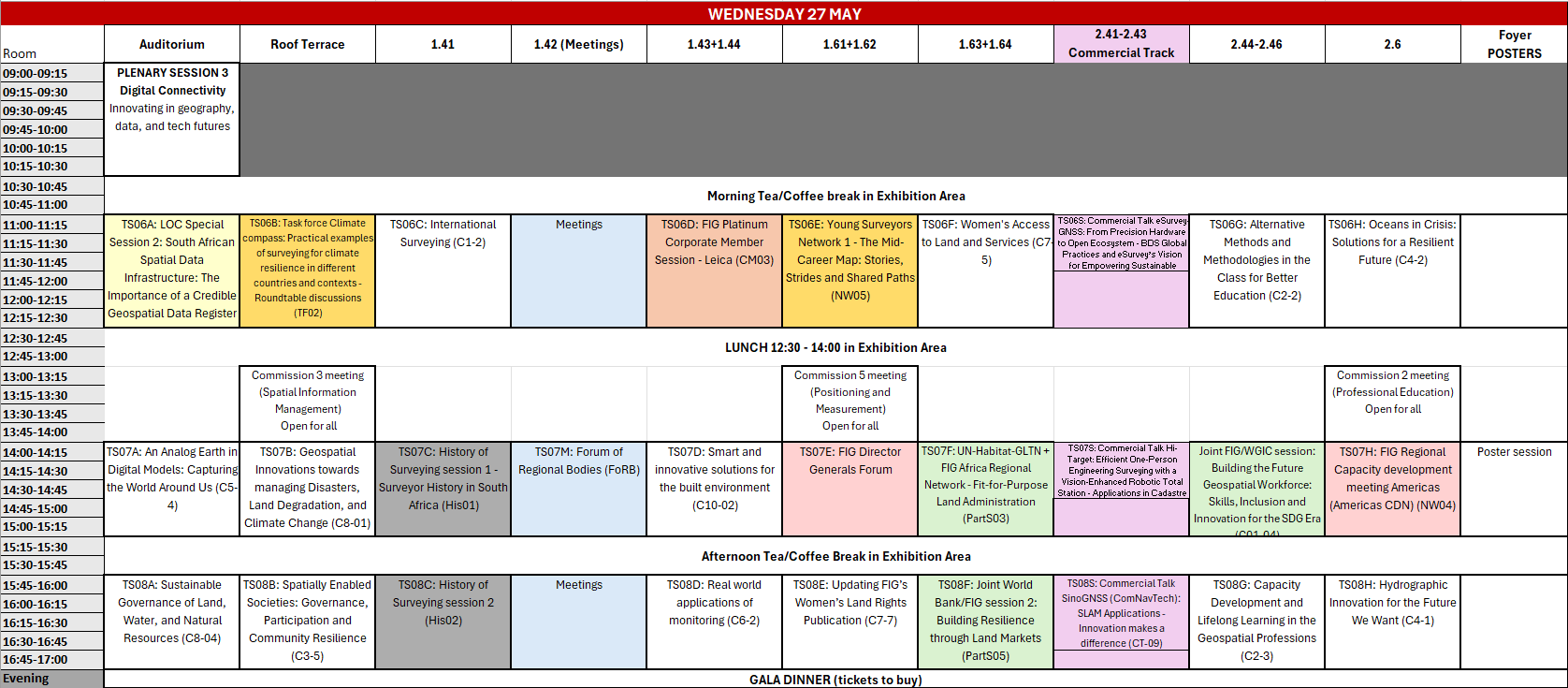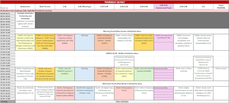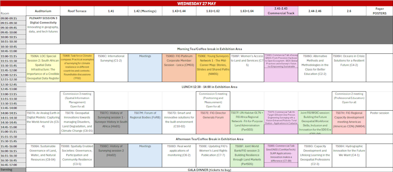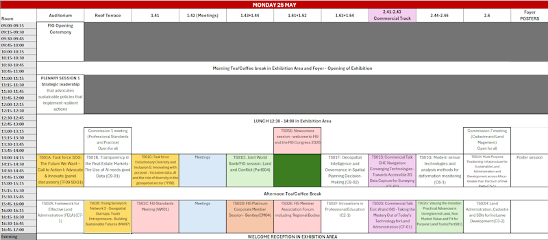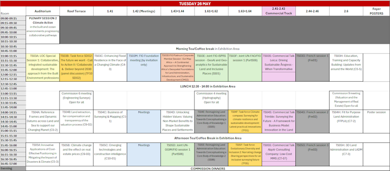 | Evenings | Welcome Reception | FIG Commission Dinners | Gala Dinner | |||||